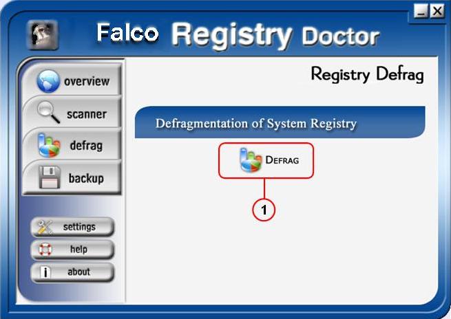 1. Нажмите на кнопку "Defrag" , чтобы начать дефрагментацию реестра.