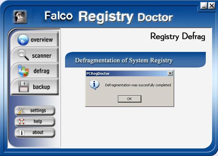 При завершении Falco Registry Doctor проинформирует Вас о том, что дефрагментация завершена.